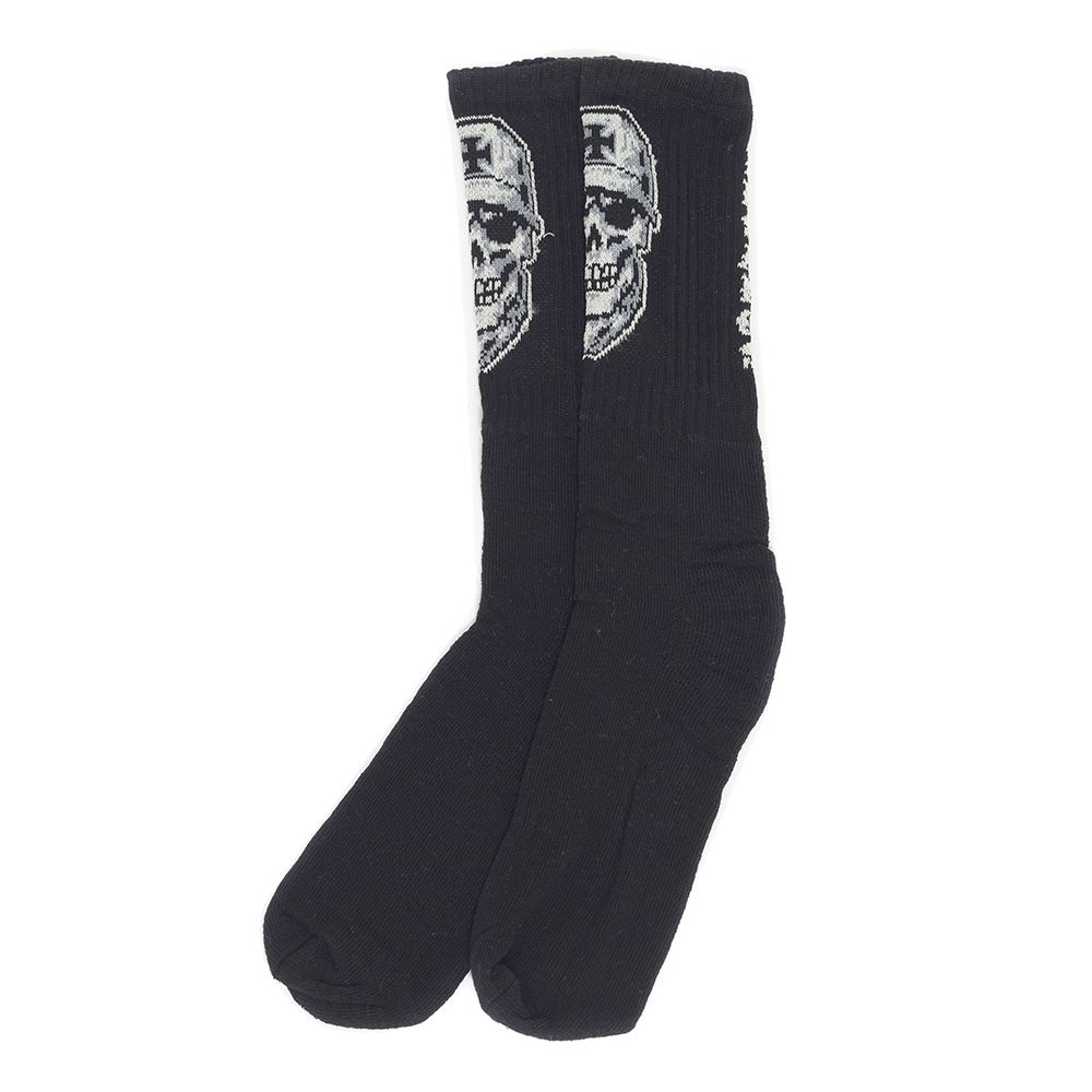 Meia Cano Longo Skull Meia masculina modelo cano longo, estampa Skull Insanos Mc. Impossível não ficar estiloso com esse par de meias! ESPECIFICAÇÕES DO PRODUTO Modelo cano longo Estampa Caveira na frente / Escrita na parte de trás Material sustentável Marca: 18 Store Tecido: Algodão