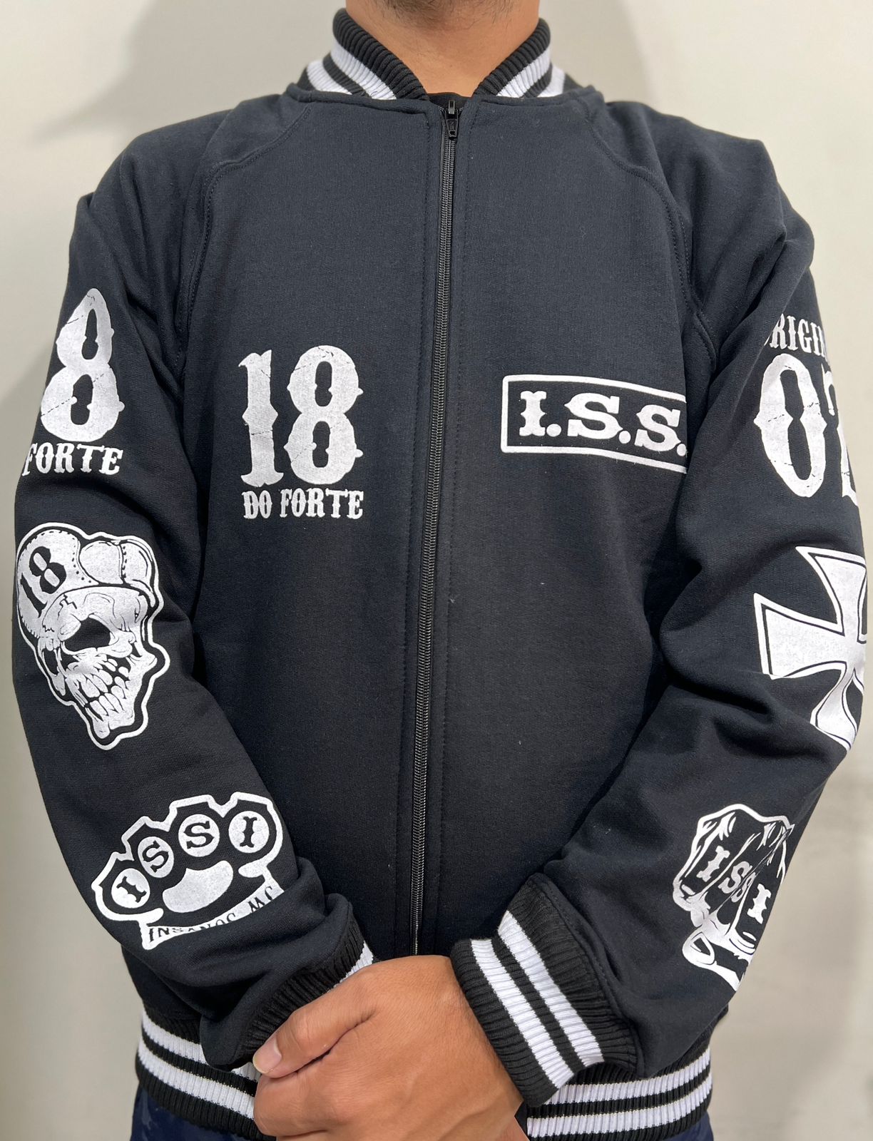As estampas em alto contraste trazem a força do 18 do Forte, com símbolos clássicos do universo Insanos MC, incluindo a icônica cruz nas costas e detalhes marcantes nas mangas.
